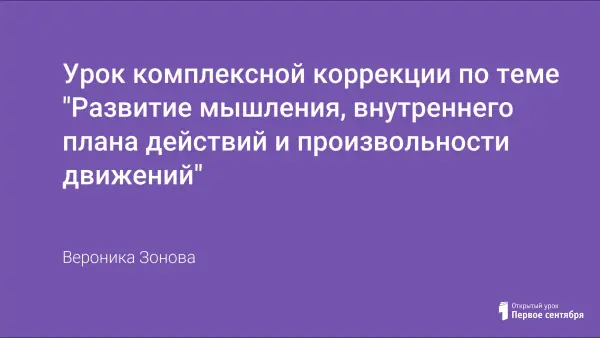 Урок по комплексной коррекции направлен на развитие словесно-логического мышления. Развивает у детей умение действовать по плану, предложенному учителем, а также развивает умение детей выполнять произвольные движения под музыку.