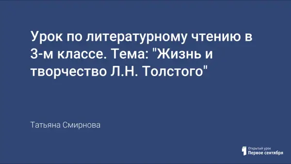 Цель урока: познакомить учащихся с жизнью и творчеством Л.Н. Толстого. Урок основан на показе презентации на протяжении всего урока. В ней представлены важнейшие этапы жизни Л.Н. Толстого.