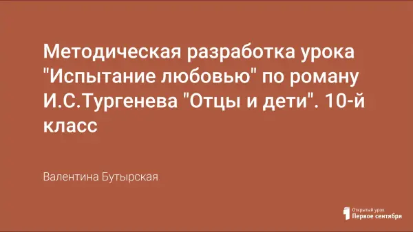 Цели урока: раскрыть суть отношений героев романа “Отцы и дети”; понять, для чего автор испытывает героев любовью к женщине.