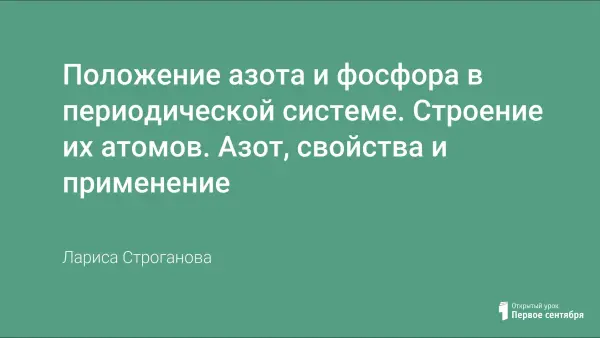 Цель урока: дать общую характеристику подгруппы азота в свете строения атома и положения в периодической системе, конкретизировать знания о ковалентной неполярной связи на примере молекулы азота, рассмотреть физические и химические свойства азота в свете ОВР, расширить знания о значении азота в природе и жизни человека.