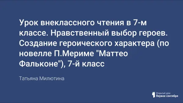 Урок литературы, в ходе которого учащиеся составляют нравственный портрет героя новеллы П.Мериме "Маттео Фальконе". Большое внимание в статье уделено средствам создания героического хорактера.