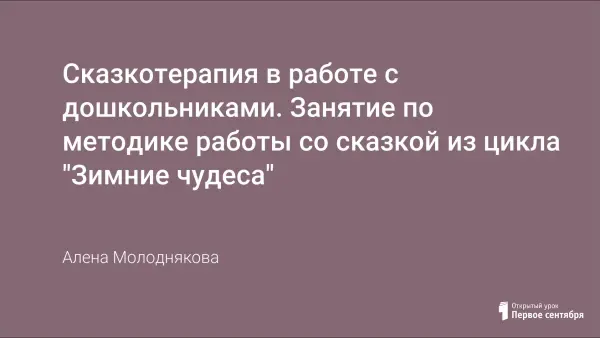 Сказкотерапия в работе с дошкольниками. Занятие по методике работы со сказкой из цикла "Зимние чудеса"