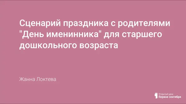 В статье представлен сценарий досуга «День именинника» для детей старшего дошкольного возраста. Он способствует сплочению семьи и взаимопониманию всех участников образовательного процесса. Родители всегда являются активными участниками и помощниками в организации и проведении подобных досугов.