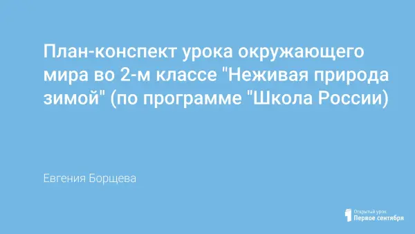 Главная цель урока - провести наблюдения за зимними изменениями в природе; систематизировать и обогатить знания детей о неживой природе Алтайского края; сравнивать изменения и явления в неживой природе в разное время года; приводить примеры зимних изменений, явлений в неживой природе из своей местности.