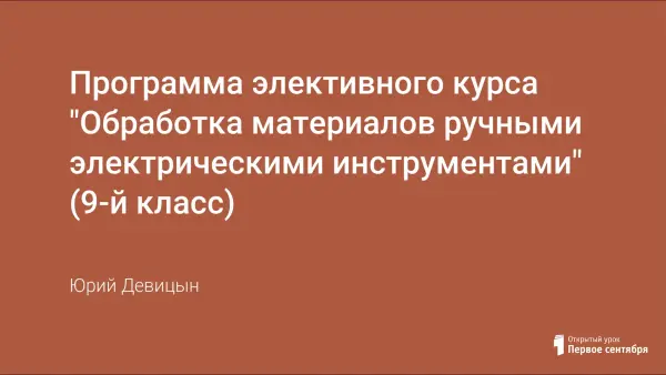 Данный курс обучения учащихся по обработке материалов из древесины современными ручными электрическими инструментами расширяет возможности учащихся по приобретению трудовых навыков и умений, технических, технологических знаний, необходимых для участия в общественно полезном, производительном труде.