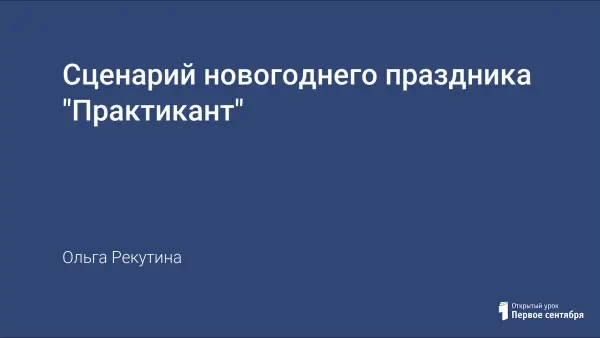 Внеклассное мероприятие – сценарий новогоднего праздника — рассчитано на старший школьный возраст и позволяет старшеклассникам весело и необычно провести праздник: появление не традиционного Деда Мороза, а его молодого сына (практиканта) добавляет веселья и ощущение новизны.