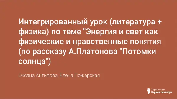 Интегрированный урок (литература + физика) по теме "Энергия и свет как физические и нравственные понятия (по рассказу А.Платонова "Потомки солнца")