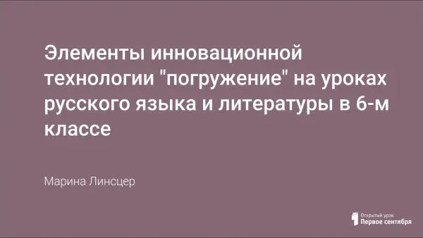 Характеристика принципов технологии "погружение": концентрированный характер, совершенствование чувственных форм восприятия, длительность занятия одним словесно-знаковым предметом. Первый опыт применения элементов технологии погружения на уроках развития речи в 5-м классе. Применение элементов технологии "погружение" на уроках русского языка и литературы в 6-м классе. Конспект урока по литературе с элементами технологии "погружение": в "Зимней сказке Анатолия Кыштымова".