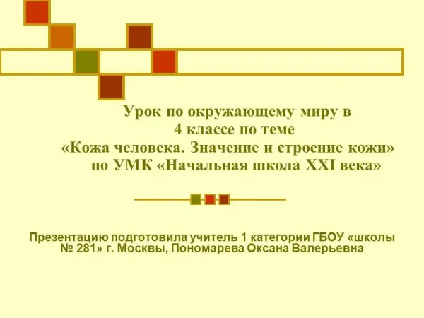 Урок окружающего мира на тему «Кожа человека. Значение и строение кожи». 4-й класс, УМК «Школа XXI века»