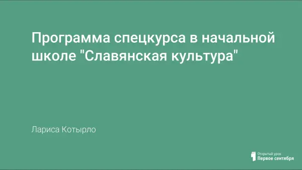 Программа призвана восстановить единство и целостность в изучении исторического культурного процесса развития человеческого общества. Интегрированный курс славянской культуры объединяет уроки чтения, природоведения, художественного труда, фольклора, танца, изобразительной деятельности. Содержательную основу курса составляют материалы сказок, народных песен, потешек, мифов и легенд, исторических рассказов. Курс преподносится в устной форме, на слух, и в письменной – раскрашивание тетради, оформление рисунков и т.д., а также в форме движений через танец. Новизна курса состоит в глубоком изучении русского фольклора в сопоставлении с фольклором белорусского, украинского и польского народов.