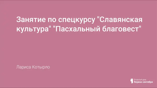 Урок знакомит учащихся с праздником Пасхи. Учитель показывает его красоту, нежность и святость. Воспитывает в детях желание семейного единения и любовь к семейному очагу, радость духовного труда.