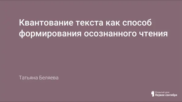 В статье раскрывается суть приема квантования текста и рассматривается возможность его использования в начальной школе для формирования осознанности чтения на примере квантования литературного произведения.