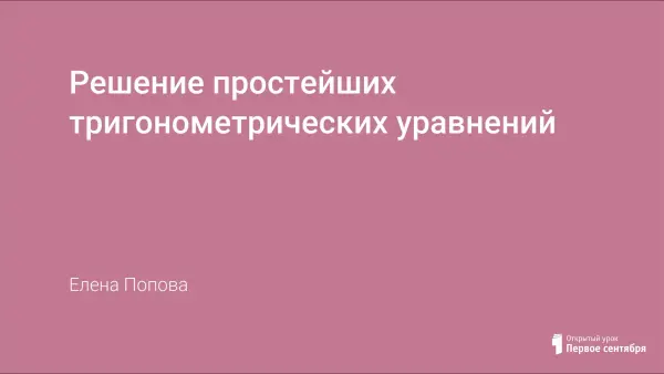 В работе представлен урок по алгебре и началам анализа для 10-го класса по теме "Решение простейших тригонометрических уравнений". Урок проходит в форме соревнования между двумя командами.