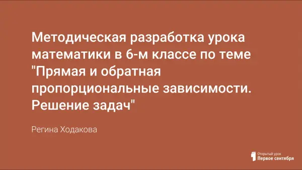 Разработка направлена на закрепление следующих понятий: пропорция, основное свойство пропорции, прямо пропорциональные величины, обратно пропорциональные величины. В конце урока предлагается проведение самостоятельной работы, которая содержит два варианта. Следует отметить, что вариант 1 соответствует базовому уровню знаний, вариант 2 – повышенному уровню. Самостоятельная работа позволит увидеть результат деятельности на уроке.