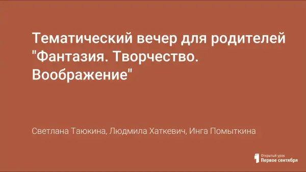 Тематический вечер для родителей "Фантазия. Творчество. Воображение"