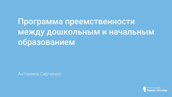 Целью программы является обеспечение преемственности и непрерывности в организации образовательной, воспитательной, учебно-методической работы между дошкольным и начальным звеном образования. В программе представлены организационно-методические мероприятия, мероприятия по работе с детьми, система взаимодействия педагогов и родителей.