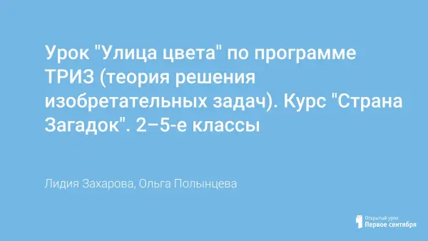 Урок "Улица цвета" по программе ТРИЗ (теория решения изобретательных задач). Курс "Страна Загадок". 2–5-е классы
