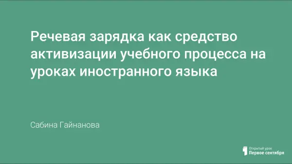 Активизация учебной деятельности возможна при условии создания на уроке атмосферы сотрудничества и взаимопонимания. Необходимость речевой зарядки в том, что требуется переключить внимание не только с одного предмета на другой, но и с одного языка на другой. Речевая зарядка позволяет ученикам, отличающимся скоростью мышления, уровнем владения языком, степенью концентрации внимания, включиться в урок наиболее полноценно.