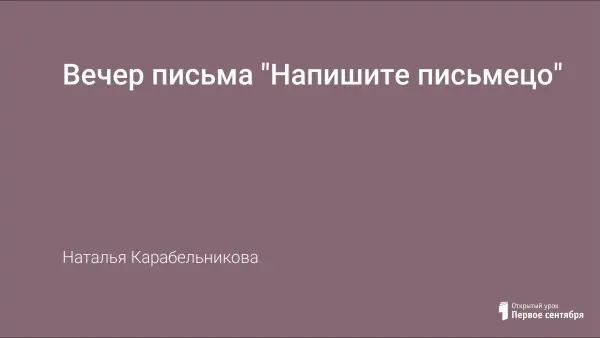 Сценарий вечера для учащихся 5–11-х классов. Мероприятие реализует следующие цели: познакомить учащихся с истоками письменности, правилами написания письма; привить интерес к эпистолярному жанру; развивать умение применять различные виды письма; воспитывать культуру речевого общения.