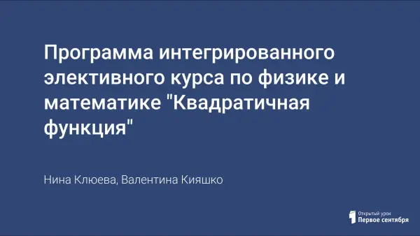 Программа интегрированного элективного курса по физике и математике "Квадратичная функция"