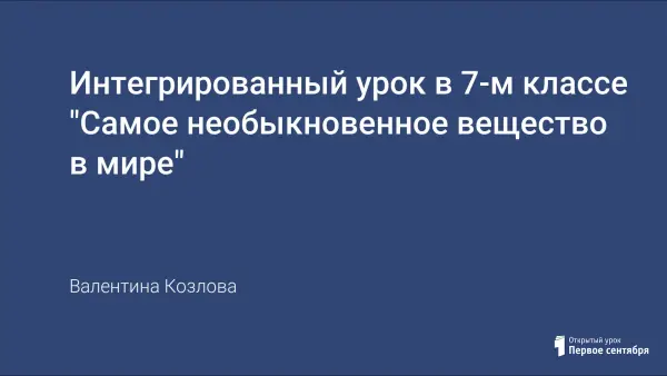 Интегрированный урок в 7-м классе "Самое необыкновенное вещество в мире"