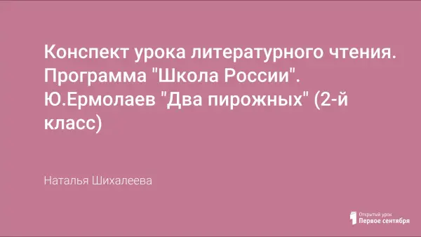 Конспект урока литературного чтения разработан по образовательной программе "Школа России". Цель урока – продолжить знакомство с жизнью и творчеством Павла Петровича Бажова. Данный урок совершенствует навык беглого чтения; обогащает словарный запас; развивает внимание учащихся; учит составлению портретной характеристики героев; воспитывает внимательность друг к другу, к животным, к природе.