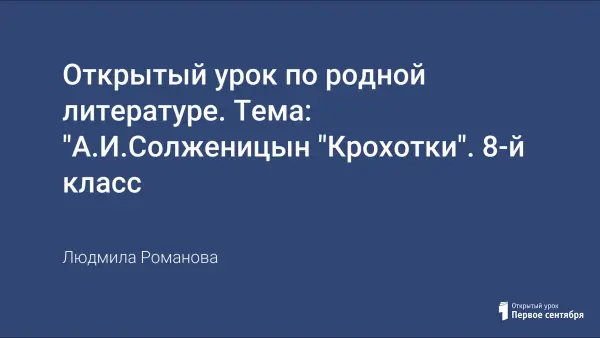 Цели урока: дать учащимся представление о личности писателя А.И.Солженицына; определить тематику рассказов-миниатюр, углубить представление учащихся о жанровых особенностях стихотворений в прозе, провести сопоставительный анализ рассказов; выявить авторскую позицию; способствовать формированию индивидуального восприятия жизни и личности писателя через его творчество.
