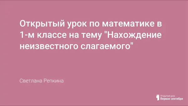 Открытый урок по математике в 1-м классе с целью закреплять приемы нахождения неизвестного слагаемого, формировать геометрическую компетентность, готовность к использованию информационных ресурсов, развивать логическое мышление, правильное научное мировоззрение, расширять представление об окружающем мире.