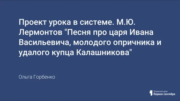 Первый урок в системе – установка на чтение. Знакомство с историческим материалом, важным для понимания идейного содержания и образов «Песни…». Заключительный урок посвящен фольклорным традициям, на котором ученики придут к выводу, что М.Ю. Лермонтов не подражал устной народной поэзии, а проникся ее духом и, опираясь на ее особенности, создал своеобразное, оригинальное произведение.