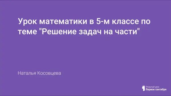 Данный урок предполагает формирование умений по анализу условий текстовых задач на "части" и поиску оптимальных путей их решения. Для достижения поставленных целей предлагается использовать технологию обучения в сотрудничестве через работу в группах. План урока содержит необходимый практический материал в виде набора задач по теме.