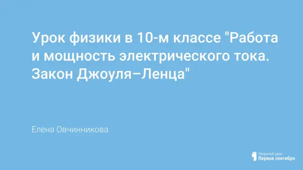 Материал урока расширяет знания учащихся по теме "Законы постоянного тока". Формируется представление о законе Джоуля–Ленца. Работа строится таким образом, что заставляет обучающихся по-новому осмысливать имеющиеся знания, пополняя и углубляя их в процессе изучения теоретического материала и выполнения предлагаемых заданий.