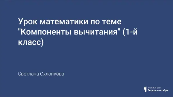 Цели урока: ввести названия компонентов вычитания, работать над правильным использованием этих терминов в речи, формировать умение определять взаимосвязь между частью и целым, развивать мыслительную деятельность (наблюдение, классификация, обобщение) и математическую речь; формировать мотивацию понимания цели, учебных действий, действий контроля и оценки.