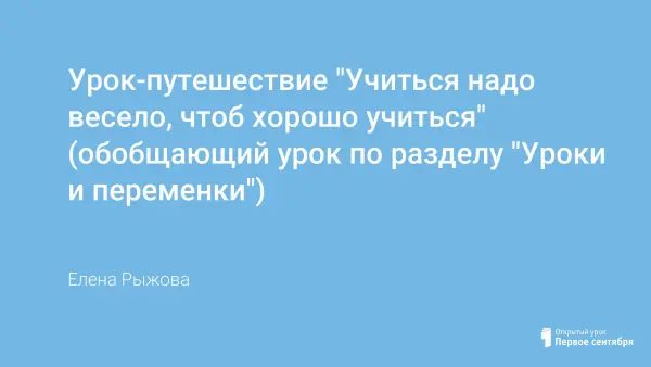 Урок-путешествие является обобщающим уроком по разделу «Уроки и переменки». Цель урока: обобщить знание детей по разделу; формировать умения литературоведческого анализа текста; отрабатывать навыки правильного и выразительного чтения.