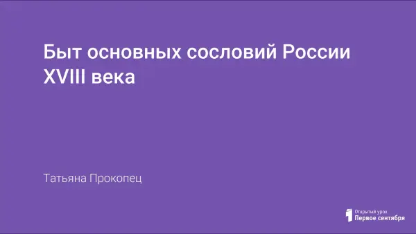 Цели урока: показать обучающимся особенности жизни основных сословий России XVIII века на фоне переходного периода в развитии страны; опираясь на технологию сотрудничества, формировать навыки работы с первоисточниками, сравнивать материал и делать выводы, составлять опорный конспект, работать с понятиями; воспитывать на культурных традициях России любовь к прекрасному в жизни, уважение к трудовому народу.