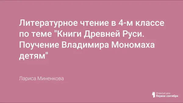 Цель урока: дать понятие о летописном жанре "наставление, поучение",