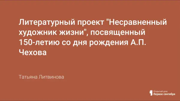 Защита данного проекта в форме литературной гостиной проводилась учащимися 10-го класса. Проект предполагает расширение знаний учащихся о личности и творчестве А.П. Чехова, развитие интереса к русской классике. Используемая в проекте музыка П.И. Чайковского, фрагменты из фильмов и балета способствуют воспитанию чувства прекрасного у школьников.