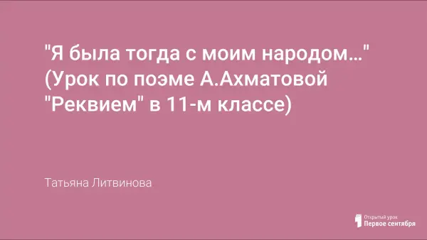 Урок по поэме "Реквием" проводится после знакомства с лирикой А.Ахматовой. Цель урока: развивать умение анализировать содержание стихотворного текста и основные художественные особенности, делать самостоятельные выводы и высказывать своё мнение, а также понимать авторскую позицию.