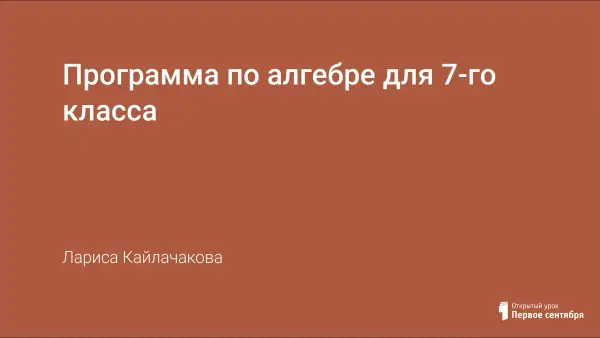 Программа составлена для учителей, работающих в 7-м классе по УМК под редакцией А.Г. Мордковича в общеобразовательных школах. В нее входит пояснительная записка, тематическое планирование и развернутое тематическое планирование по каждому уроку.