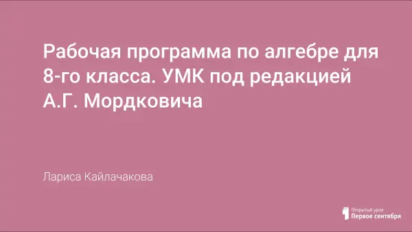 Программа составлена для учителей, работающих в 8-м классе по УМК под редакцией А.Г. Мордковича в общеобразовательных школах. В нее входят пояснительная записка, тематическое планирование и развернутое тематическое планирование по каждому уроку.