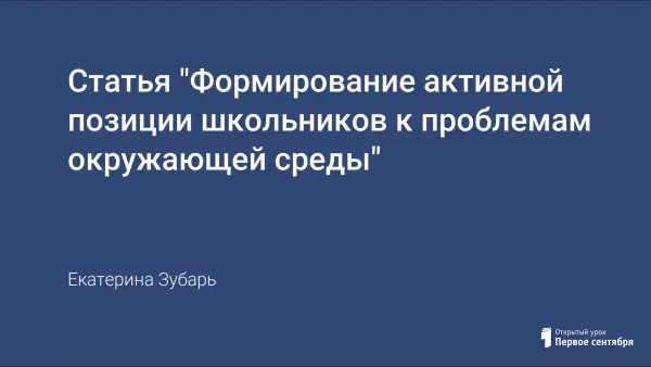 В статье описан опыт работы по формированию активной позиции школьников к проблемам окружающей среды с учетом возрастной периодизации детей. Работа состоит из трех этапов: 1. Формирование личностного отношения учащихся к объектам изучения (11–12 лет). 2. Мотивационно-целевая ориентация учащихся по отношению к природе (13–14 лет). 3. Формирование потребности у учащихся в активной позиции, в защите окружающей среды, в пропаганде экологических и природоохранных знаний (15–16 лет).