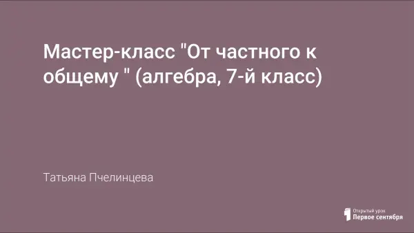 Одной из важнейших задач современной школы является интеллектуальное (умственное) воспитание учащихся. Данный мастер-класс представляет опыт работы в 7-м классе в виде «Бесед математика» «От частного к общему», в которых учащиеся обобщают опыт работы с тождествами, знакомятся с биномом Ньютона, треугольником Паскаля, разложением на множители двучленов. Предложенный опыт формировался в условиях опытно-экспериментальной работы инновационного учреждения, лингвистической гимназии №23 им. А.Г. Столетова г. Владимира.