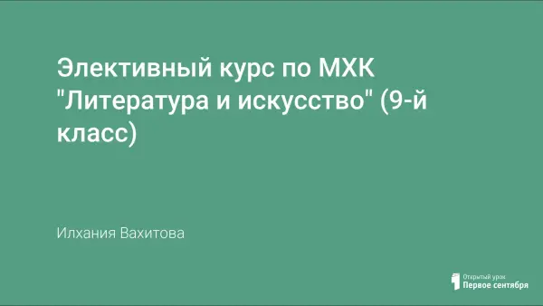 Программа элективного курса (курса по выбору для учащихся 9-го предпрофильного класса) рассчитана на 20 учебных часов. В процессе изучения данного курса учащиеся имеют возможность расширить свои представления о важнейших достижениях человека. Курс является межпредметным: наряду со сведениями из истории мировой литературы в содержание курса входит знакомство с шедеврами мировой музыки, живописи и фотографии.