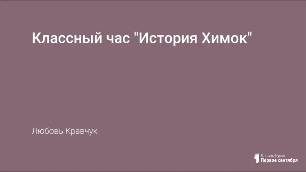 Классный час посвящен истории города Химки. Ученики знакомятся с легендами о происхождении названия реки, на которой расположен город, сведениями о развитии промышленности и инфраструктуры, упоминаются в художественных произведениях о городе, стихах химчан.