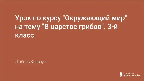 Урок построен с межгрупповой работой (каждая группа имеет свое задание в общей цели), используются возможности лабораторного оборудования. Характеризуется строение шляпочных грибов, моделируется различие грибов-двойников. Объясняется значения слов «грибница», «съедобные грибы», «несъедобные грибы», с помощью иллюстраций учебника различаются съедобные, несъедобные и ядовитые грибы, называются правила сбора грибов.