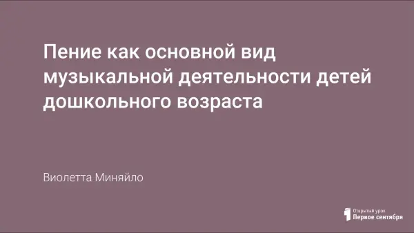 Пение как основной вид музыкальной деятельности детей дошкольного возраста