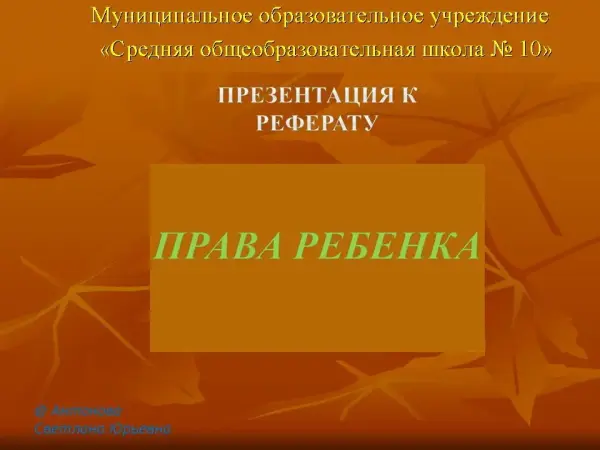 Статья посвящена правам ребенка. Задача взрослых – помочь ребенку подготовиться к самостоятельной жизни, стать полноправным членом общества, создать ребенку условия для нормального физического и интеллектуального развития.