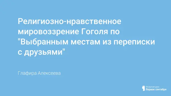 Цель работы – попытаться обозначить религиозно-нравственные ориентиры, заявленные Николаем Васильевичем в несколько неожиданном для него эпистолярном жанре, и дать с помощью работ К.В. Мочульского, М.М. Дунаева, С.Л. Франка, О.Зеньковского, святителя Игнатия Брянчанинова оценку писательскому труду Гоголя.