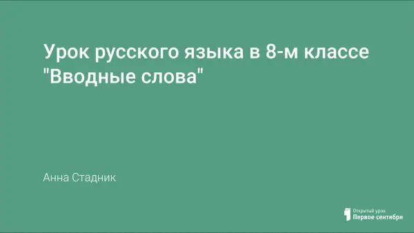Урок по русскому языку в 8-м классе по теме "Вводные слова" построен в форме эвристической лекции-беседы. В процессе наблюдений над вводными словами в предложениях дети сами делают вывод о значениях вводных слов, их употреблении в речи и постановке знаков препинания при них. На уроке использованы разные виды работы: задание в виде теста, работа с учебником, творческое задание, нахождение ошибок в тексте.