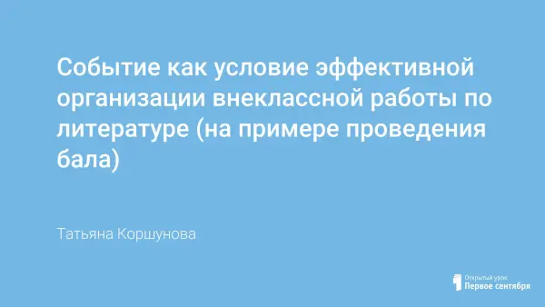 В статье представляется технология проведения бала, описывается система внеклассной работы по литературе, организующим фактором для которой является бал. Цель урока: пробудить интерес к культуре прошлого, русской классической литературе, возродить формы общественной жизни XIX в., способствующие повышению общей культуры личности. Бал является стимулом для развития читательского интереса и литературного творчества учащихся; гармонизации межличностных отношений взрослых и детей.