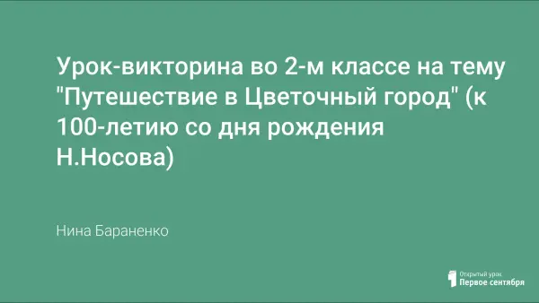Итоговый урок-викторина, в ходе которого в игровой соревновательной форме осуществляется систематизация знаний учащихся о произведениях Н.Н. Носова. Для более успешного достижения целей урока использована презентация и разнообразные занимательные материалы (кроссворды, загадки, инсценировка).